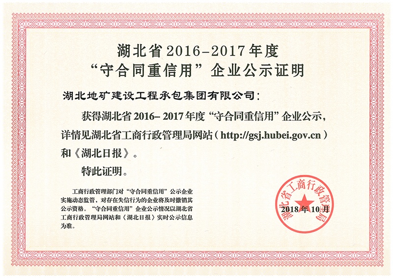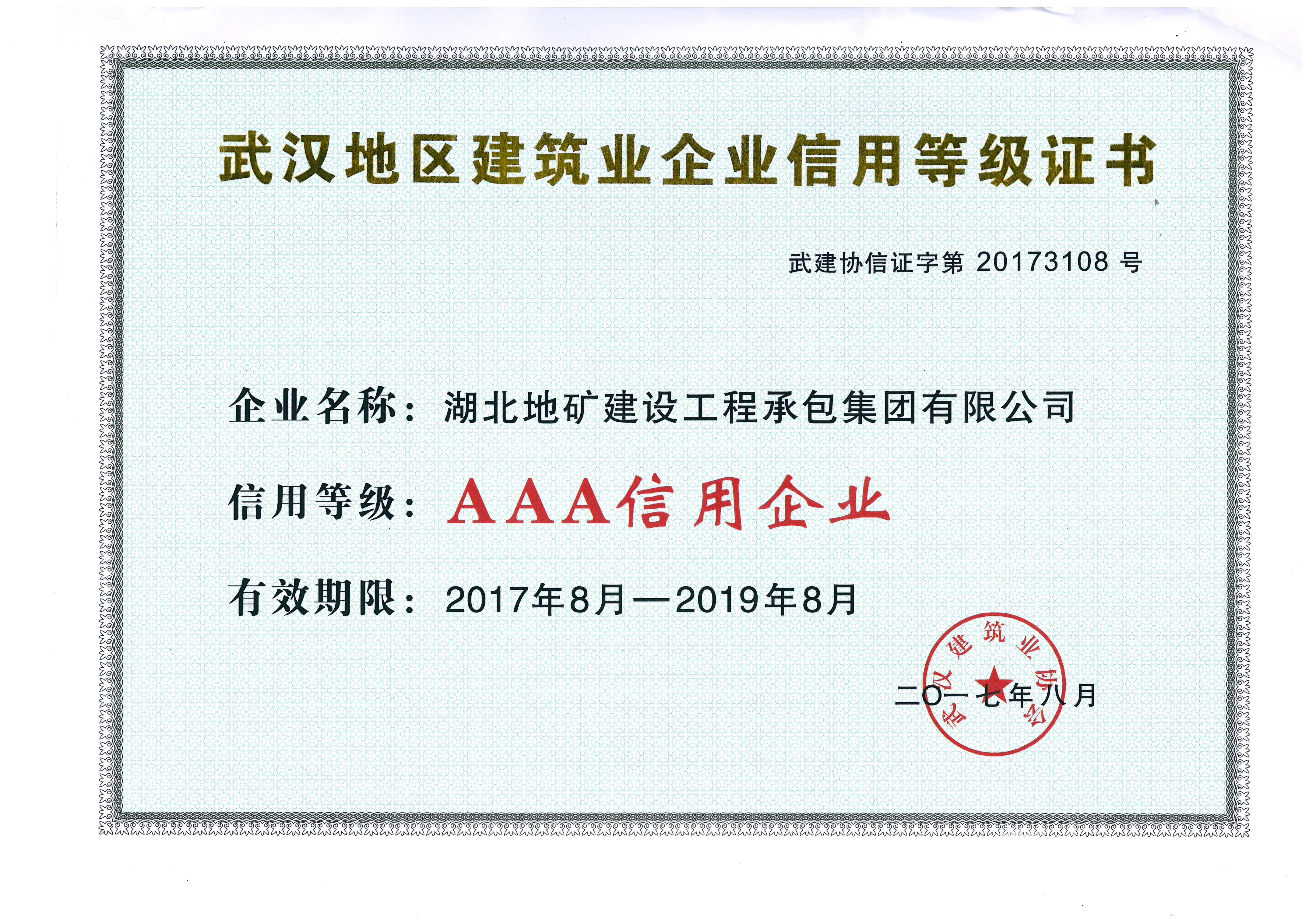 2017年武漢地區(qū)建筑業(yè)企業(yè)信用等級(jí)證書3A