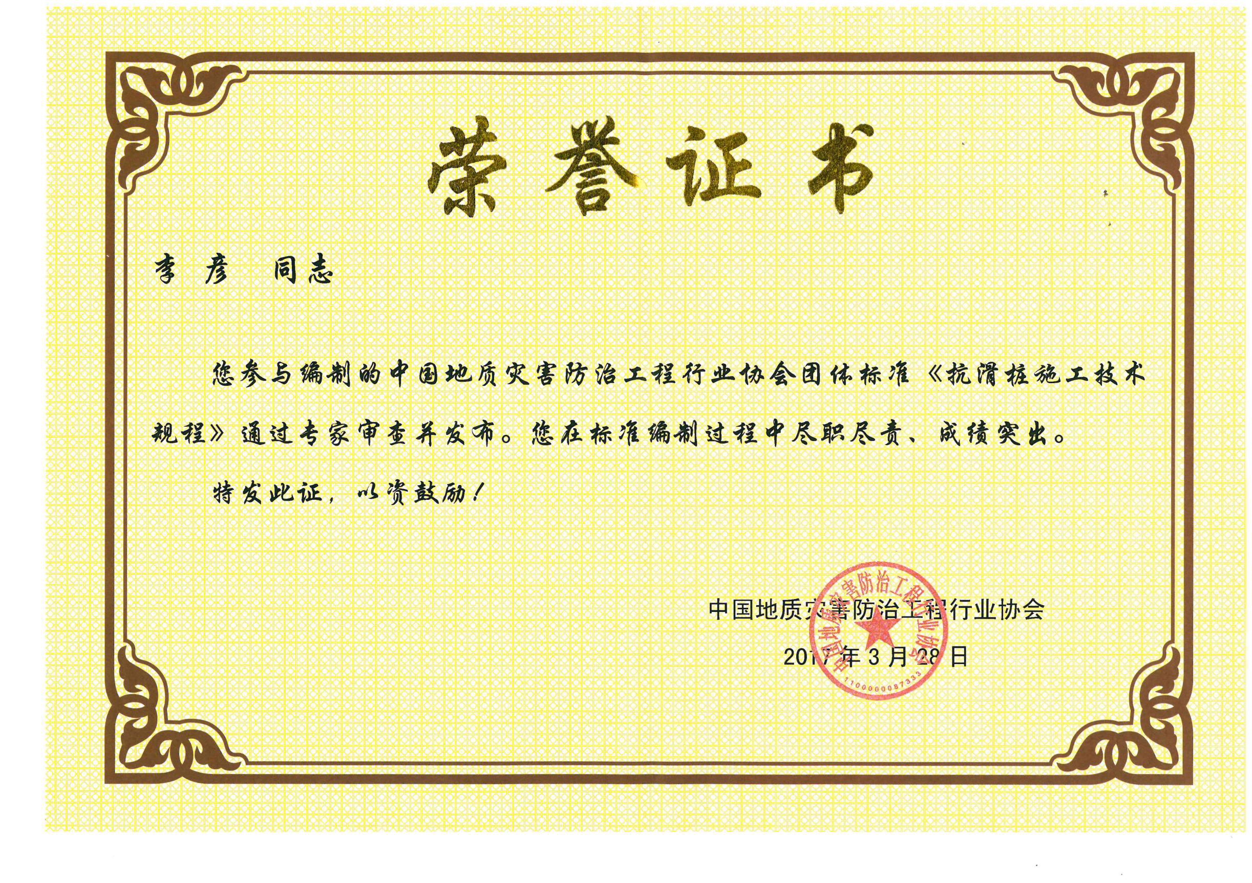 中國地質(zhì)災(zāi)害防治工程行業(yè)協(xié)會(huì)編制《抗滑樁施工技術(shù)規(guī)程》——李彥