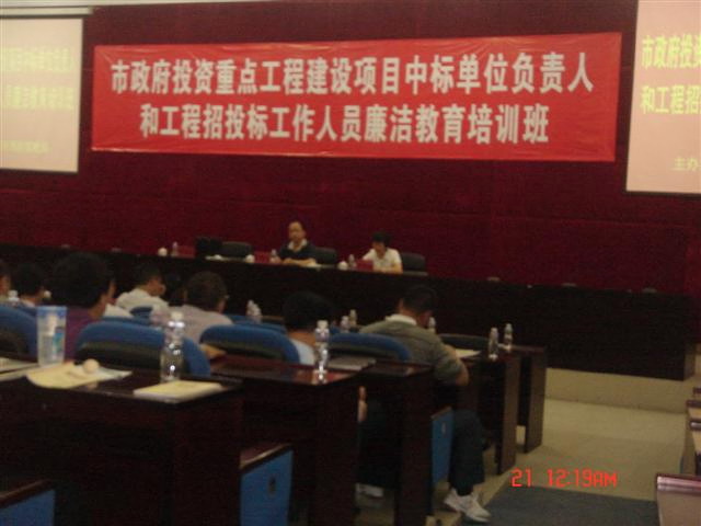 6月18日,珠海市城鄉(xiāng)規(guī)劃建設(shè)局、紀(jì)檢委、檢察院在珠海市委黨校舉辦市政府投資重點工程建設(shè)項目中標(biāo)單位負(fù)責(zé)人和工程招標(biāo)工作人員廉潔教育培訓(xùn)班,分公司領(lǐng)導(dǎo)馮誠及負(fù)責(zé)招投標(biāo)工作的經(jīng)營人員參加了培訓(xùn)。