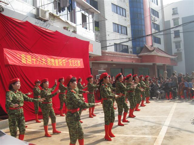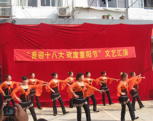 10月23日上午,黃石基地管理處在楠竹林小區(qū)門前廣場舉行“喜迎十八大 歡度重陽節(jié)”文藝匯演,基地領(lǐng)導(dǎo)、馬鞍山社區(qū)領(lǐng)導(dǎo)出席并觀看了演出。 該活動由基地楠竹林中老年文體協(xié)會牽頭,基地領(lǐng)導(dǎo)親自參與了活動的籌備和部署工作?;顒蝇F(xiàn)場,離退休職工和小區(qū)居民載歌載舞共同回首激情歲月,歌頌黨和國家,贊美幸福的晚年生活,用獨特的方式慶祝重陽節(jié),向即將召開的黨的十八大獻禮。豐富精彩的節(jié)目吸引了周邊數(shù)百名群眾到場觀看,整個匯演氣氛熱烈,掌聲不斷。 10月23日下午,黃岡基地舉辦重陽節(jié)慶?;顒?。基地主任饒水明發(fā)表了節(jié)日賀詞,祝福老同志們健康長壽,并鼓勵他們堅持健康生活方式,繼續(xù)加強政治學(xué)習(xí),關(guān)心支持花園式基地建設(shè),共建美好家園。 慶?;顒蝇F(xiàn)場,活潑喜慶的廣場舞表演、深情婉轉(zhuǎn)的女聲獨唱、熱情澎湃的大合唱、自信投入的二胡獨奏、養(yǎng)生太極拳太極劍表演和現(xiàn)場老同志瀟灑飄逸的書法、繪畫秀令觀眾大飽眼福。趣味競賽環(huán)節(jié),排著長隊擲飛鏢、握力比拼的老同志,摩拳擦掌,躍躍欲試,比賽成績好的贏得觀眾熱烈的掌聲,成績稍差的也得到更多的鼓勵掌聲;顛乒乓球比賽,有幾位女同志居然顛了1400多下,讓一旁數(shù)球的同志都笑彎了腰。 黃岡基地管理處全體干部職工表示,老同志是單位寶貴財富,一定要讓離退休職工老有所學(xué)、老有所養(yǎng)、老有所為、老有所樂,這是他們最大的心愿。