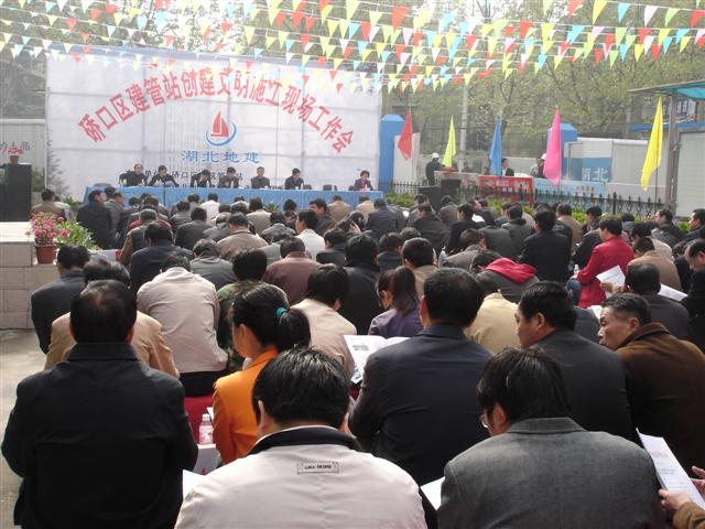 為了創(chuàng)建全國文明城市、國家衛(wèi)生城市、國家環(huán)保模范城市和國家園林城市,全面提升武漢城市功能,提高市民文明素質(zhì),推進(jìn)“創(chuàng)新武漢”、“和諧武漢”建設(shè)。4月2日,我集團(tuán)地調(diào)大樓項目部承辦了“武漢市硚口區(qū)創(chuàng)建文明施工現(xiàn)場工作會”,區(qū)建設(shè)局、建管站、省地礦局房開辦領(lǐng)導(dǎo)、轄區(qū)建設(shè)單位、監(jiān)理、項目經(jīng)理等,共計200多人參加會議。會上,區(qū)建設(shè)局書記總結(jié)了硚口區(qū)建筑工地創(chuàng)建文明施工工作情況,并號召轄區(qū)工地向我集團(tuán)地調(diào)大樓項目學(xué)習(xí),以嶄新的面貌迎接2008年北京奧運會,使武漢市“四城同創(chuàng)”再上臺階。隨后我地建集團(tuán)、中建三局、山河等10家建筑企業(yè)項目經(jīng)理和建管站簽訂了項目“創(chuàng)建文明施工現(xiàn)場”責(zé)任書。