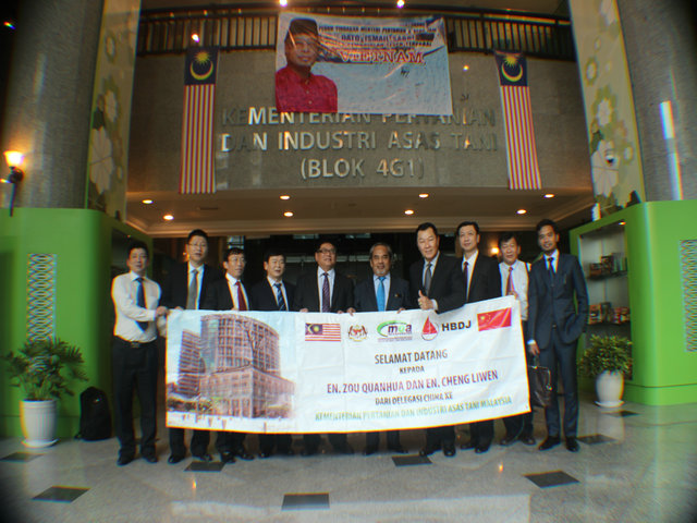 12月12日下午,應(yīng)馬來西亞農(nóng)業(yè)和農(nóng)基部副部長拿督達(dá)祖丁的邀請,考察團(tuán)一行前往位于布城的馬來西亞農(nóng)業(yè)和農(nóng)基部總部進(jìn)行了考察拜訪和會談。拿督達(dá)祖丁首先對考察團(tuán)的到來表示熱烈地歡迎,隨后介紹了農(nóng)業(yè)和農(nóng)基部的職能以及雙方未來能夠合作的領(lǐng)域。鄒泉華處長和程立文總經(jīng)理首先對副部長的邀請表示了衷心的感謝,然后介紹了湖北地礦局和地建集團(tuán)的發(fā)展歷程和優(yōu)勢行業(yè),隨后對在馬投資的藍(lán)圖經(jīng)行了描繪。雙方在友好的氣氛中就有關(guān)在馬投資發(fā)展的問題深入交換了意見,達(dá)成了就公司投資土地購買、農(nóng)業(yè)基礎(chǔ)設(shè)施建設(shè)、農(nóng)業(yè)地質(zhì)技術(shù)服務(wù)、礦產(chǎn)資源開發(fā)等多個事項(xiàng)的共識,為省地礦局、地建集團(tuán)在馬來西來獲得更好的發(fā)展奠定了基礎(chǔ)。會談結(jié)束后,副部長帶領(lǐng)考察團(tuán)參觀了農(nóng)業(yè)和農(nóng)基部農(nóng)產(chǎn)品發(fā)展展示中心。