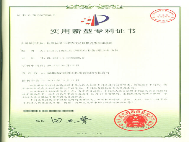 近日獲悉,地勘部獲批兩項(xiàng)國(guó)家實(shí)用新型專利,即《止水壓降與固井多功能一體化分隔器》(專利號(hào):201320274330.0)、《地質(zhì)鉆探卡埋鉆打吊錘橫式質(zhì)量加速器》(專利號(hào):201320336569.6)。