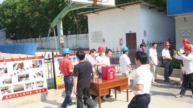 地建承包公司地調(diào)大樓項(xiàng)目部舉行了莊重的捐款儀式,還制作了宣傳版塊,項(xiàng)目部的職工,業(yè)主、監(jiān)理單位和分包單位的人員踴躍加入了捐款的行列,不一會(huì)兒,就募集到了5000多元。