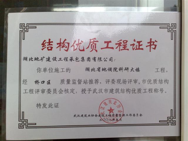 在省地礦局、集團(tuán)領(lǐng)導(dǎo)的關(guān)心和指導(dǎo)下,地調(diào)大樓項(xiàng)目部全體人員經(jīng)過(guò)一年以來(lái)堅(jiān)持不懈的努力,于近日榮獲 “武漢市結(jié)構(gòu)優(yōu)質(zhì)工程”稱(chēng)號(hào)。