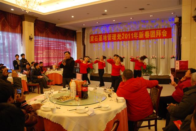 2011年1月17日,黃石基地管理處在團(tuán)城山八月桂酒店舉行了新春團(tuán)拜會?;刂魅锡垵扇A發(fā)表了新春致辭,并代表班子成員向基地辛勤工作的職工及關(guān)心支持基地工作的離退休老同志、職工家屬致以節(jié)日的問候和誠摯的祝福。團(tuán)拜會上基地各單位、各部門獻(xiàn)上了自已精心準(zhǔn)備的文藝節(jié)目,抽獎活動更是將團(tuán)拜會的氣氛推向了高潮。