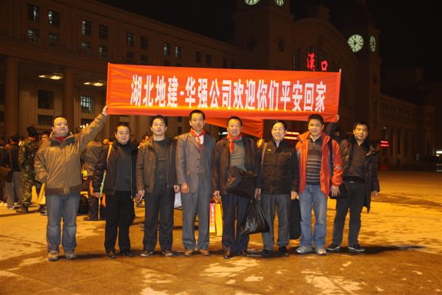 3月1日23時(shí)20分,華強(qiáng)公司領(lǐng)導(dǎo)親自帶隊(duì)到漢口火車站迎接駐利比亞員工平安回家,并為他們安排食宿。