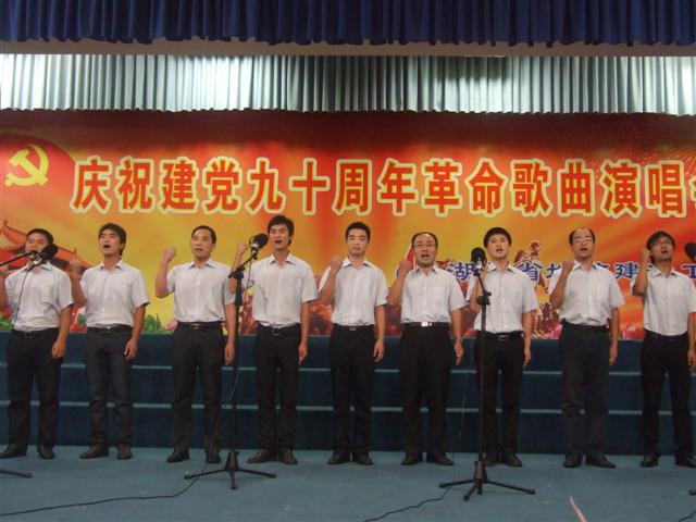 2011年6月27日,湖北省地礦建設(shè)工程院在武漢市寶豐賓館舉行慶祝建黨九十周年革命歌曲演唱會,省地質(zhì)工會主席鐘偉應(yīng)邀出席觀看了演唱會,并作了熱情洋溢的講話。 工程院通過舉辦此次活動,抒發(fā)了廣大職工對黨和祖國的無限熱愛,凝聚了全院干部職工的集體力量,表達了全體地建人緊跟黨走的忠誠和信心。 演唱會在院領(lǐng)導(dǎo)和院機關(guān)部門負責(zé)人合唱《沒有共產(chǎn)黨就沒有新中國》的雄壯激昂歌聲中拉開了序幕。大家用最美的心聲,誠摯的情感,歌頌偉大的黨、偉大的祖國,歌頌改革開放取得的輝煌成就,鼓舞全體地建人意氣風(fēng)發(fā)投身“二次創(chuàng)業(yè)”的偉大事業(yè),為工程院實現(xiàn)新跨越營造良好的氛圍。 來自17家院屬單位的22支參賽隊、270多名干部員工參加了比賽。演唱會現(xiàn)場座無虛席、高潮迭起、掌聲雷動。演員們以飽滿的熱情、鏗鏘的旋律唱出了對黨的豐功偉績和共產(chǎn)主義事業(yè)蒸蒸日上的由衷贊美。演出節(jié)目形式新穎,內(nèi)容豐富,既有紅歌聯(lián)唱、老歌新唱,又有伴舞、朗誦,有的還帶有手風(fēng)琴、電子琴伴奏,一首首經(jīng)典革命歌曲將演唱會現(xiàn)場推向了一個又一個高潮,引來觀眾陣陣掌聲,現(xiàn)場融為一片紅歌的海洋。黃石基地管理處選送的大合唱《黃河船夫曲》、黃岡基地管理處選送的大合唱《黃河大合唱等紅歌聯(lián)唱》氣勢磅礴,贏得滿堂喝彩;華強公司選送的《愛我中華》、武基公司選送的《我和我的祖國》、海外事業(yè)部選送的《國家》激情昂揚,博得聲聲叫好。