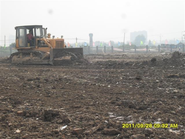 噸重的旋挖鉆機(jī)要在場地行走,對場地內(nèi)多處軟弱易陷的地方進(jìn)行了硬渣換填,并用壓路機(jī)壓實。據(jù)了解,整個場地還準(zhǔn)備攤鋪
