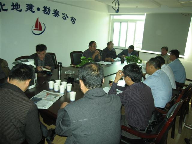 公司總工侯國倫在會上就勘察中的主要技術(shù)工作與大家進(jìn)行了探討,對報(bào)告的編寫及裝幀等方面的內(nèi)容作了統(tǒng)一的要求,對報(bào)告的內(nèi)容、格式以及在報(bào)告中容易出錯(cuò)或疏漏的章節(jié)作了詳細(xì)的規(guī)定。