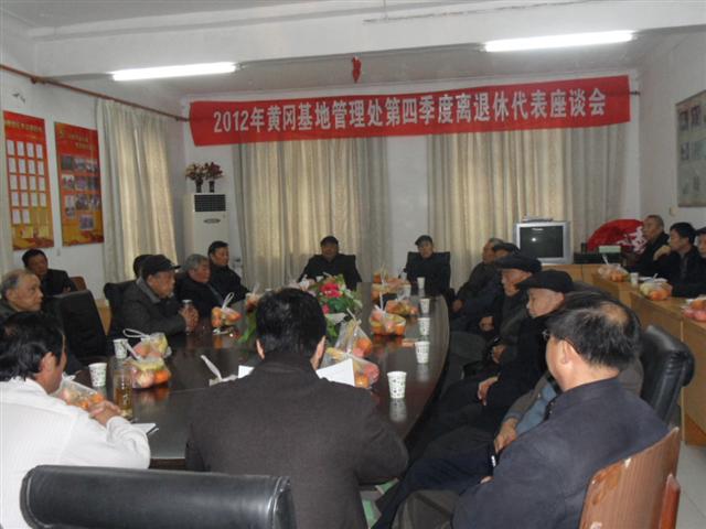 11月21日下午,黃岡基地管理處第四季度離退休職工代表座談會在機關(guān)三樓會議室召開。基地主任饒水明主持會議,基地領(lǐng)導(dǎo)班子,離退休科、物業(yè)公司、保衛(wèi)科負責人,30余名離退休代表參加了會議。