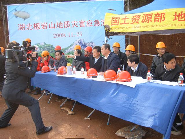 黃石市市委書記王建鳴、國(guó)土資源部環(huán)境司司長(zhǎng)關(guān)鳳俊、中國(guó)地質(zhì)環(huán)境監(jiān)測(cè)院副院長(zhǎng)田延山、省國(guó)土資源廳總工程師徐振坤、田大佑處長(zhǎng)、施偉忠副處長(zhǎng)、湖北地建集團(tuán)陳少平總工等各級(jí)領(lǐng)導(dǎo)出席了演練觀摩現(xiàn)場(chǎng)。