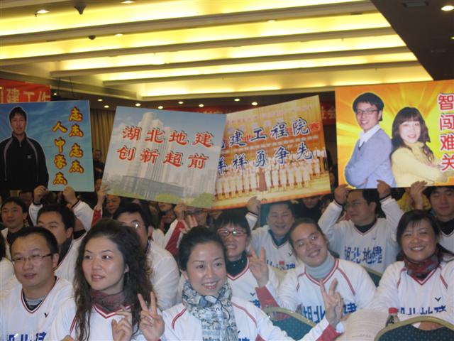 12月9日上午,在省地礦局主辦的湖北省“地礦杯”法律知識(shí)競(jìng)賽的決賽中,湖北地建集團(tuán)代表隊(duì)奮力爭(zhēng)先,一路凱歌,經(jīng)過(guò)激烈的搶答,最終勇奪第一名,隊(duì)員崔紅軍榮獲法律知識(shí)競(jìng)賽標(biāo)兵,同時(shí)地建 集團(tuán)還獲得了此次比賽的組織獎(jiǎng)。由集團(tuán)在漢單位20位職工組成的啦啦隊(duì),著裝整齊,精神抖擻,和他們手中高舉的宣傳牌一起,構(gòu)成了一道亮麗的風(fēng)景線,很好的彰顯了湖北地建的企業(yè)形象和文化特色,受到了在場(chǎng)領(lǐng)導(dǎo)和觀眾的關(guān)注和贊賞。