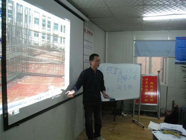 湖北地建承包公司大冶湖濱廣場項(xiàng)目部為培養(yǎng)管理人員學(xué)習(xí)能力,加強(qiáng)業(yè)務(wù)知識,進(jìn)一步提高管理水平,特舉行為期兩周,主題分別為測量工程、模板工程、鋼筋工程、混凝土工程、抹灰施工工藝、工程預(yù)算和安全管理等七個課題的學(xué)習(xí)交流活動。主講人分別為項(xiàng)目部各工種工長和相關(guān)崗位人員。大家作面對面的交流,氣氛十分熱烈,這次活動也為打造“學(xué)習(xí)型項(xiàng)目部”,提高工程管理水平起到極大的促進(jìn)作用。