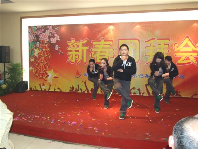 團(tuán)拜會(huì)在16:30時(shí)正式開始,首先由集團(tuán)董事長(zhǎng)兼總經(jīng)理程立文先生致辭,并激情演唱一曲《為了誰(shuí)》,拉開了晚會(huì)序幕,充滿溫馨與浪漫的晚會(huì)將大家?guī)胍黄鞓?lè)的氛圍之中。隨后合唱《精忠報(bào)國(guó)》、舞蹈《nobody》、花鼓戲《劉??抽浴返茸層^眾連聲叫好,小品《唐伯虎點(diǎn)秋香》、舞蹈《super dance》、肚皮舞表演將晚會(huì)推向高潮,臺(tái)下觀眾歡聲不斷。晚會(huì)中,集團(tuán)黨委書記吳國(guó)才、工會(huì)主席張鶴峰都參與激情演唱,歡笑聲和掌聲貫穿晚會(huì)始終。