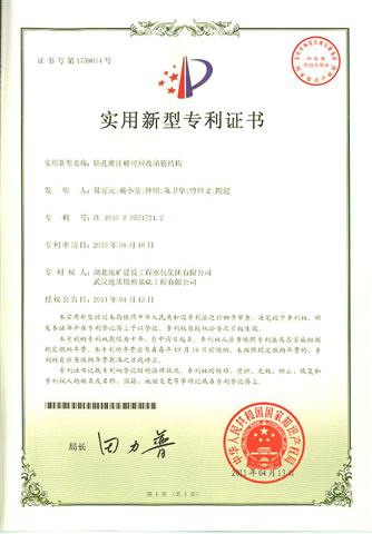 近日,從國家知識產(chǎn)權(quán)局公告獲悉,由湖北地礦建設(shè)工程承包集團(tuán)有限公司和武漢地質(zhì)勘察基礎(chǔ)工程有限公司聯(lián)合申報的“鉆孔灌注樁可回收吊筋結(jié)構(gòu)”技術(shù)被授予實用新型專利。 近年來,湖北地建集團(tuán)高度重視知識產(chǎn)權(quán)工作,積極實施知識產(chǎn)權(quán)戰(zhàn)略和品牌建設(shè)戰(zhàn)略,有效的提升了集團(tuán)知識產(chǎn)權(quán)的創(chuàng)造、應(yīng)用、保護(hù)和管理能力。